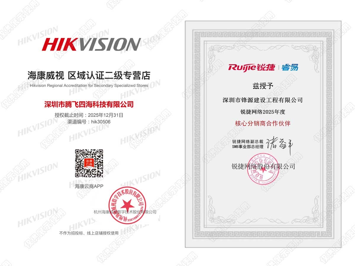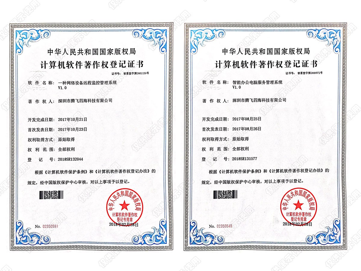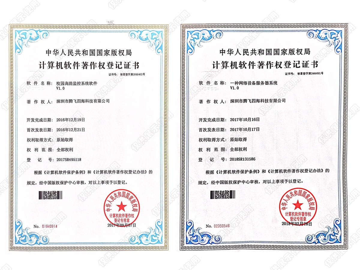 深圳市騰飛四??萍加邢薰緦WF(xiàn)代化企業(yè)信息建設,爭做國內互聯(lián)網與安防領域的領導者。作為一家擁有自主知識產權的國家高新技術企業(yè),在成立之初便堅持從用戶的實際需求出發(fā),以質量求發(fā)展,以信譽求生存。歷經15年的風雨路程,如今,我們已榮獲電子與智能化專業(yè)承包資質、廣東省公安廳安防資質、安全生產許可證資質、計算機信息系統(tǒng)集成等多項資質。截止目前公司已通過:ISO9001質量管理體系認證,ISO14001環(huán)境管理體系和ISO45001職業(yè)健康安全管理體系;榮獲AAA資信認證、實用新型專利證書、計算機軟件著作權登記證書。公司現(xiàn)為深圳市安防協(xié)會理事單位,深圳市文明誠信企業(yè),廣東省“守合同重信用”企業(yè)、深圳市政府采購中心供應商等多個榮譽證書。